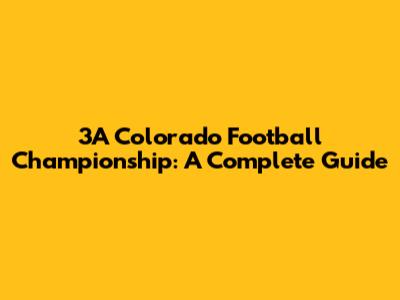 3A Colorado Football Championship: A Complete Guide