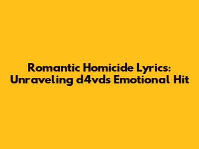 Hey guys, let's talk about d4vd's killer track, "Romantic Homicide." This song has completely taken over, right? It's all over TikTok, Instagram, and pretty much everywhere else you look. But have you really stopped to listen to the lyrics? Beyond the catchy tune, there's some serious depth there. In this article, we're going to dive deep into the "Romantic Homicide" lyrics, dissecting their meaning, and figuring out what d4vd was really trying to say. Get ready to unpack the heartbreak, the anger, and all the messy emotions that make this song so relatable.